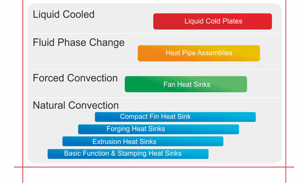 • Natural Convection applications do not rely on a specified local air velocity for heat dissipation. Typical natural convection heat sinks are passive in nature and manufactured from copper or aluminum sheet, extruded aluminum, machined or cast alloys, as well as fin assemblies.
